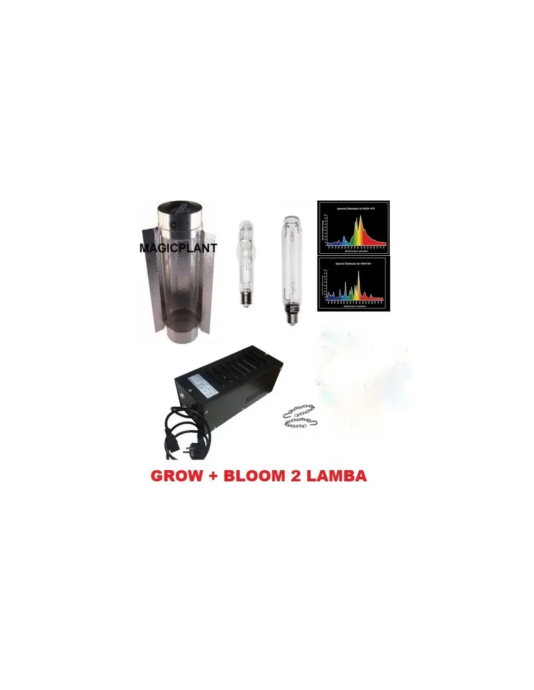 250w MagicPlant  Cooltube Grow Bloom Set 2 adet lamba içerir. Birisi gelişim dönemi için MH Ampül,diğeri ise çiçeklenme dönemi için HPS ampüldür